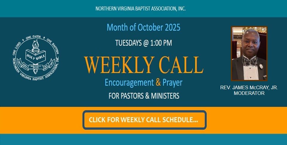 Greetings in the marvelous name of our Lord and Savior Jesus Christ. As the incoming Moderator of the Northern Virginia Baptist Association, Inc., (NVBA), I am gratefully humbled to have this opportunity to serve as the 23rd Moderator of this great Association.